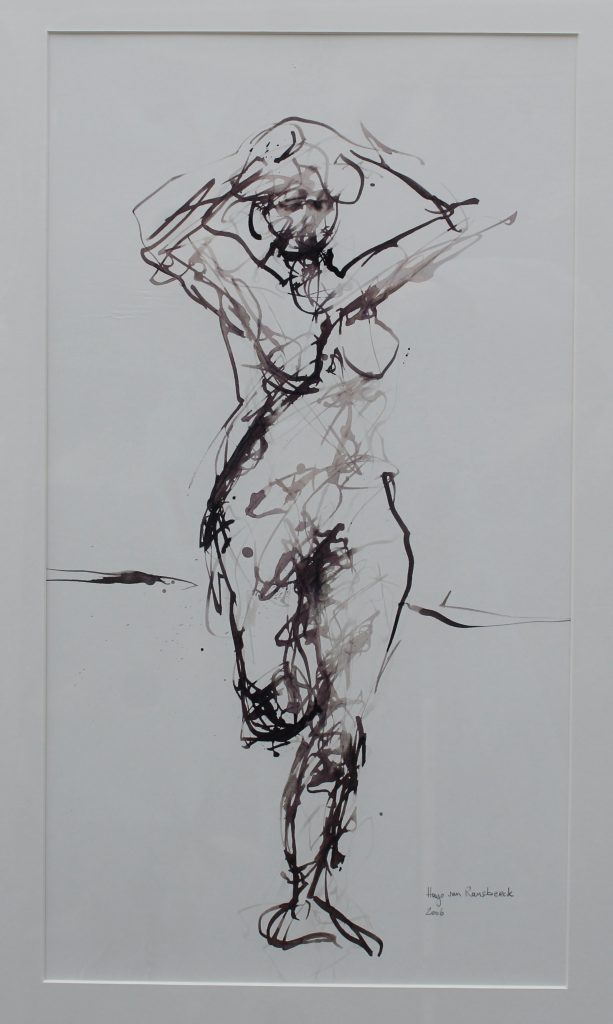 Wat typeert de kunst van Hugo? Harold Van der Perre – glasraamkunstenaar, schilder, aquarellist en tekenaar uit Dendermonde – omschrijft het als volgt.: “Tot slot trek ik ook de aandacht op de tekenaar die Hugo is. In deze tekeningen naar levend model, laten lichaamsbewegingen zich raden vanuit de chaos van zich verstrengelende lijnen. Het geheel openbaart vooral een bijna abstracte, fijngevoelige tekenschriftuur waarin wij de embryo’s van zijn beeldhouwwerken kunnen vermoeden.